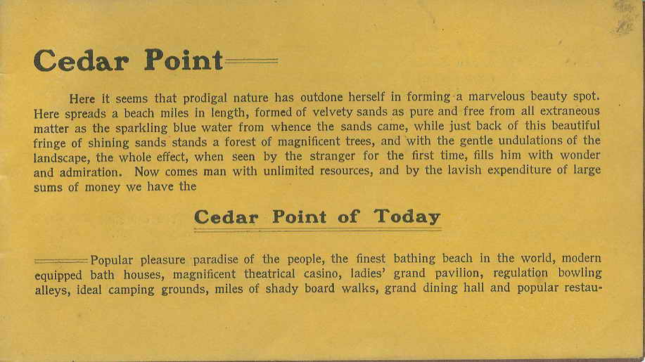 The Following Links will take you to a scaned copy of my 1902 Cedar Point Brochure. Enjoy :)