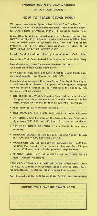 The Following Links will take you to a scaned copy of my 1953 Cedar Point Brochure. I'm basing it's date on the Reservation postcard I recieved with it.