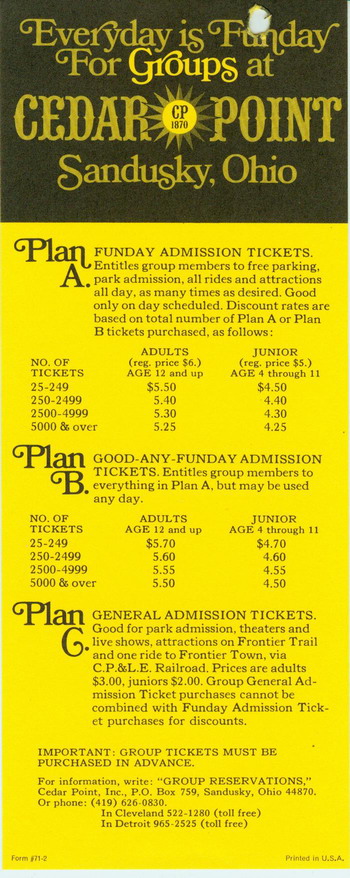 The Following Links will take you to a scaned copy of my 1971 Cedar Point Groups Rates. Enjoy :)