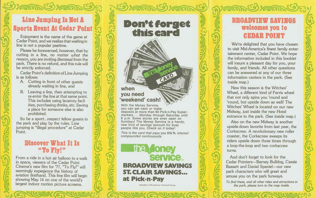 The Following Links will take you to a scaned copy of my 1977 Cedar Point Informational Booklet. Enjoy :)