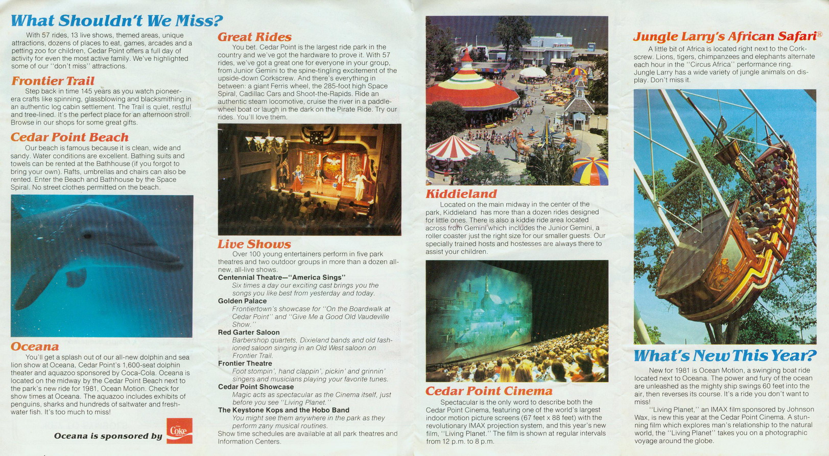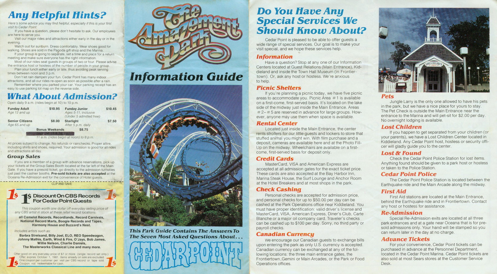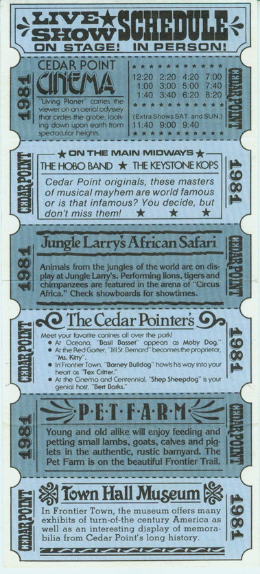 The Following Links will take you to a scaned copy of my 1981 Cedar Point Brochure & Park Guide. Enjoy :)