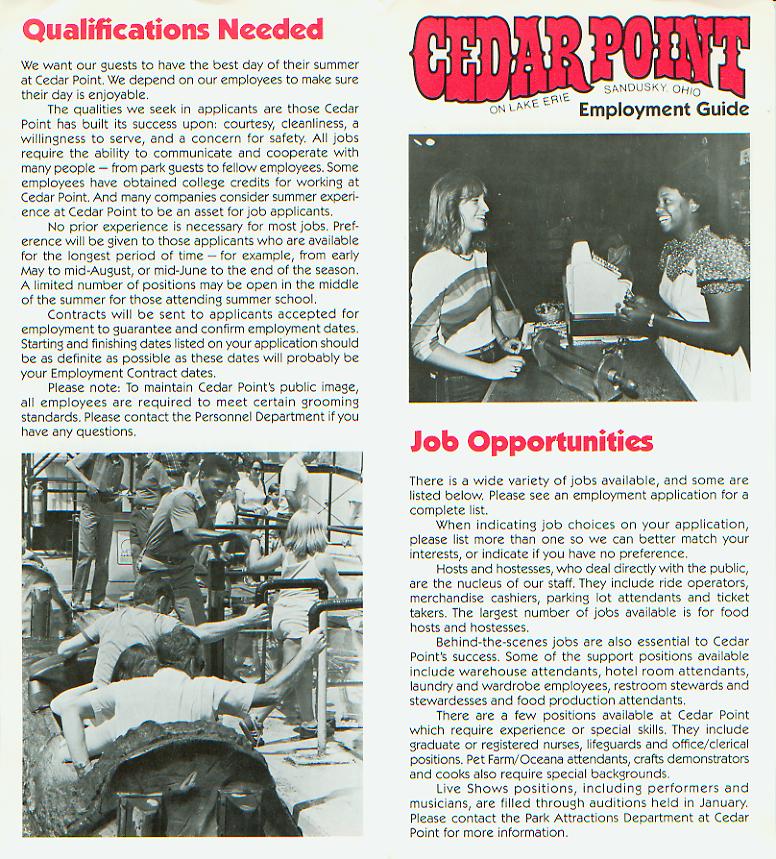 The Following Links will take you to a scaned copy of my 1982 Cedar Point Employment Brochure. Enjoy :)