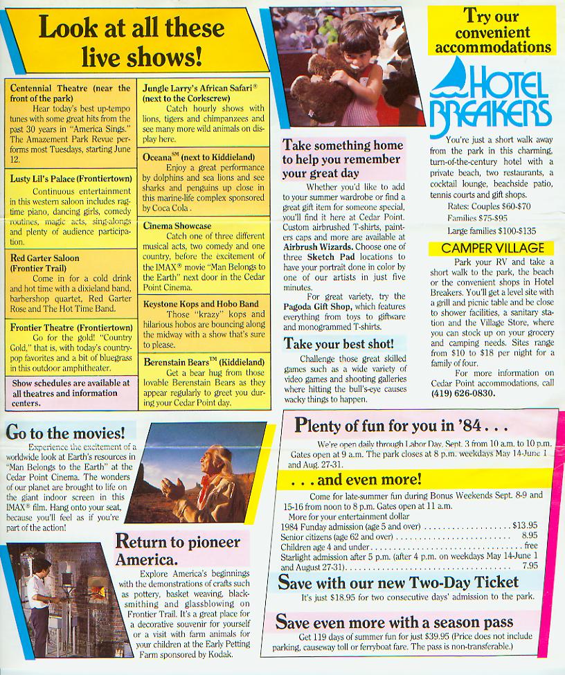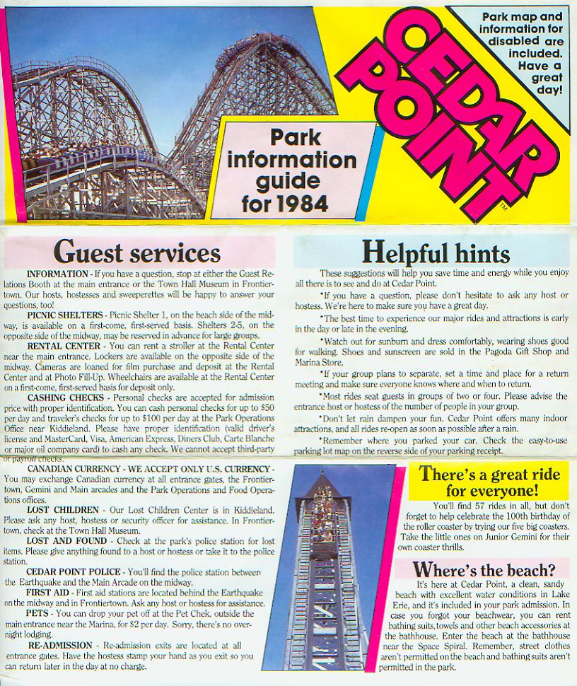 The Following Links will take you to a scaned copy of my 1984 Cedar Point Brochure & Park Guide. Enjoy :)