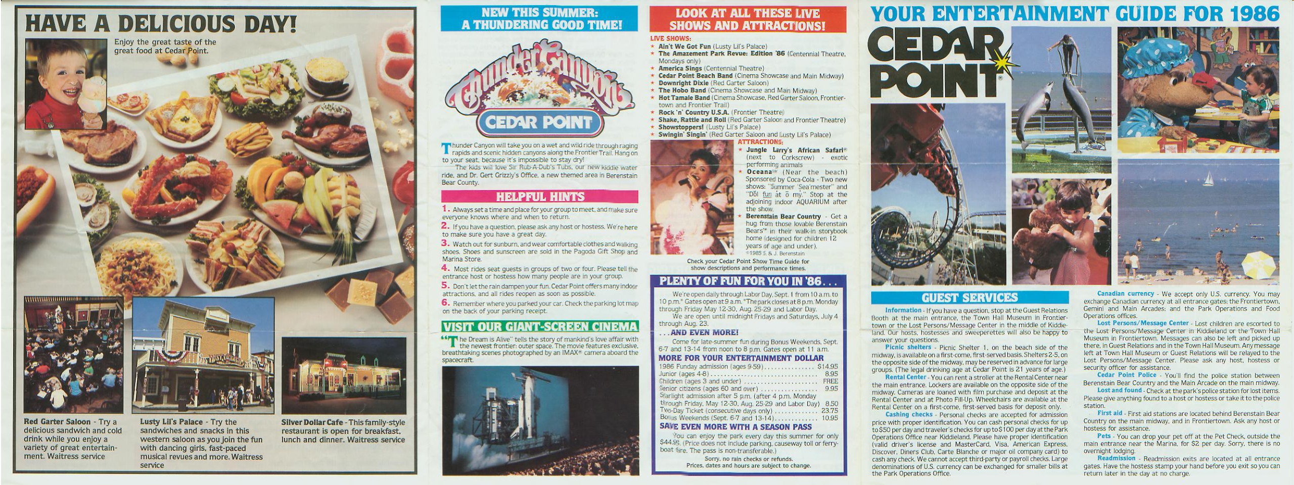 The Following Links will take you to a scaned copy of my 1986 Cedar Point Brochure & Park Guide.Enjoy :)