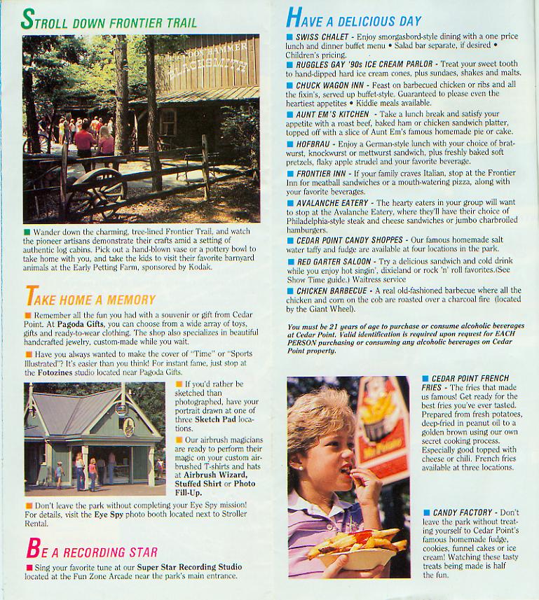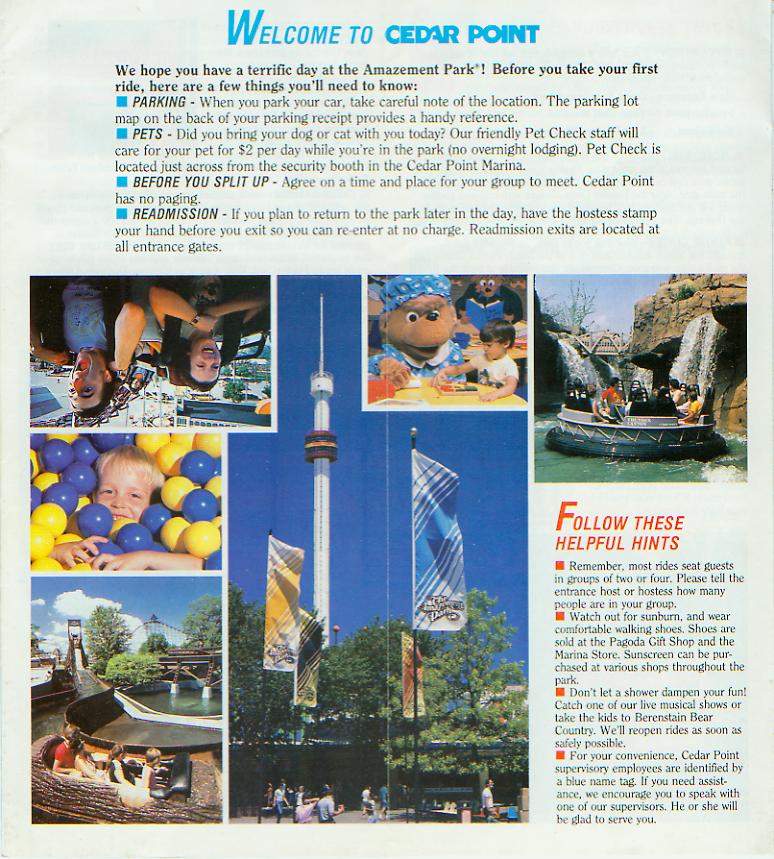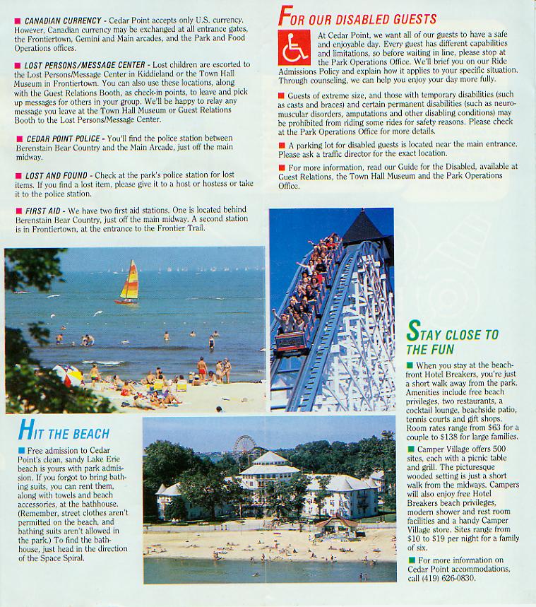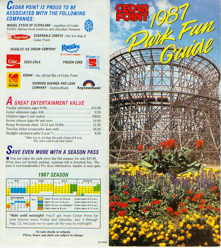 The Following Links will take you to a scaned copy of my 1987 Cedar Point Brochure & Park Guide. Enjoy :)
