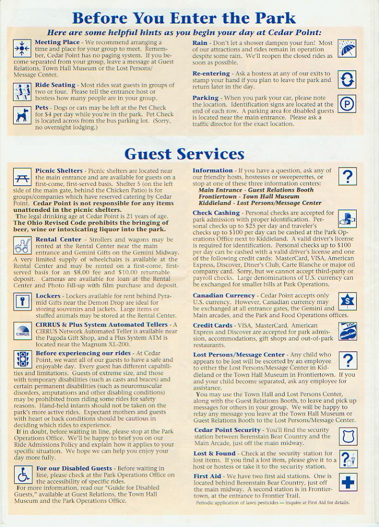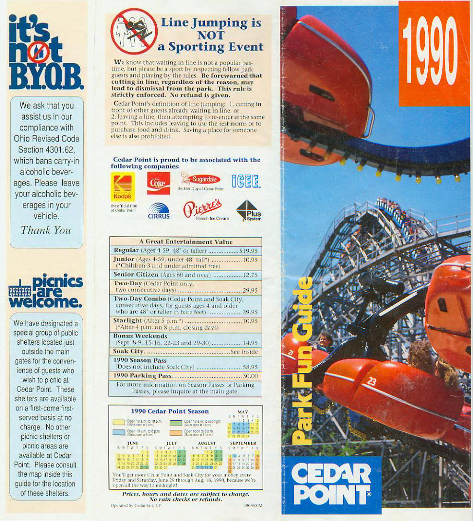 The Following Links will take you to a scaned copy of my 1990 Cedar Point Brochure & Park Guide. Enjoy :)