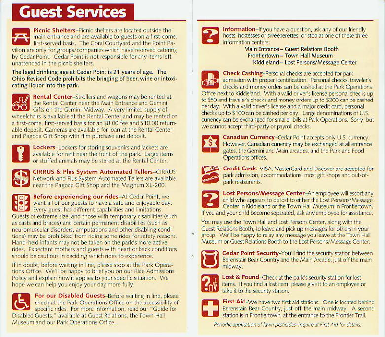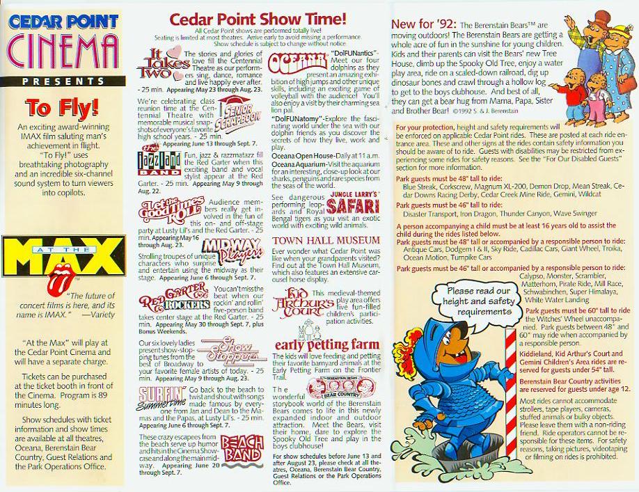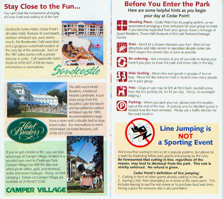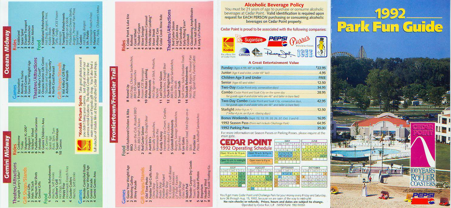The Following Links will take you to a scaned copy of my 1992 Cedar Point Brochure & Park Guide. Enjoy :)