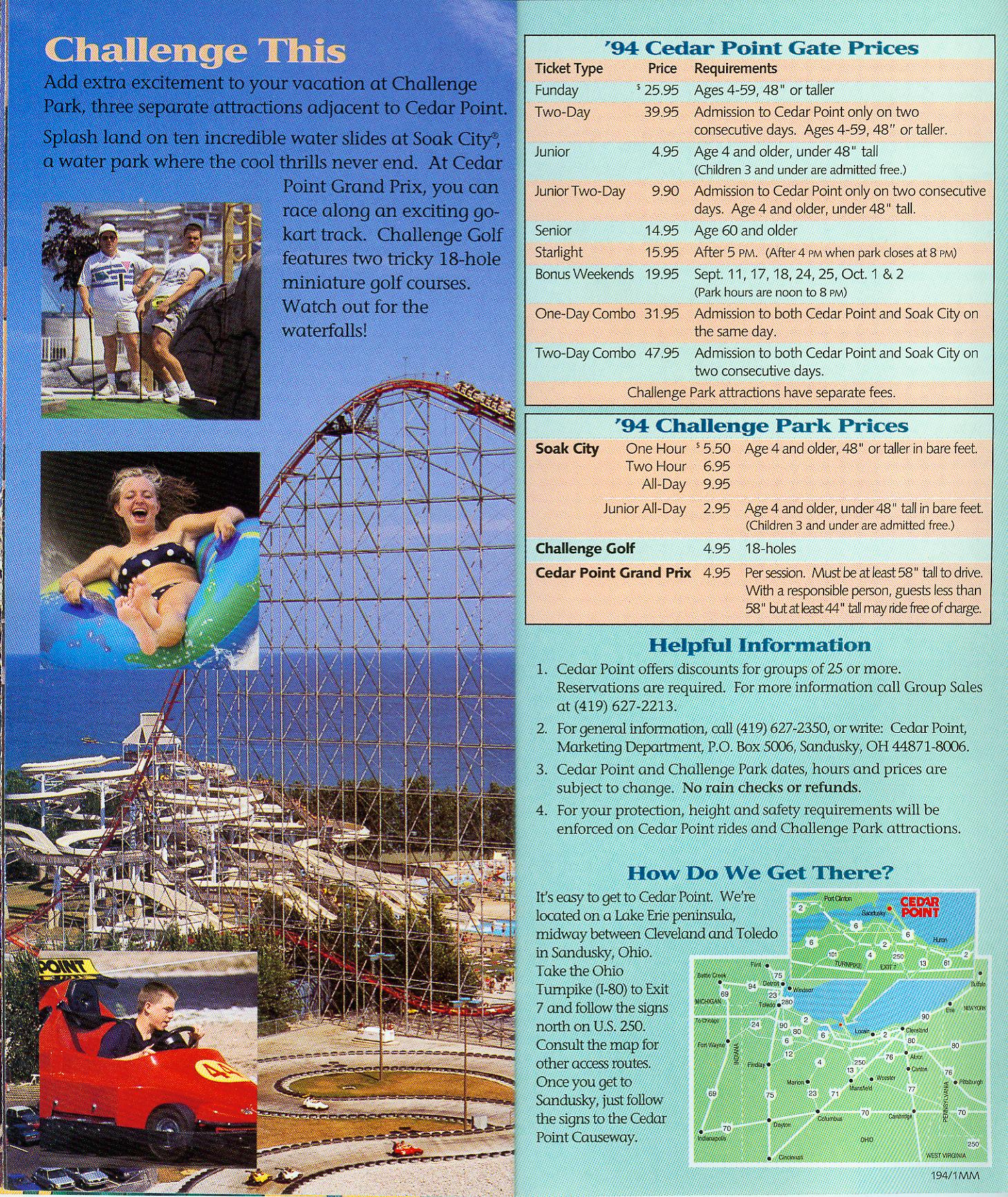 The Following Links will take you to a scaned copy of my 1994 Cedar Point Brochure. Enjoy :)