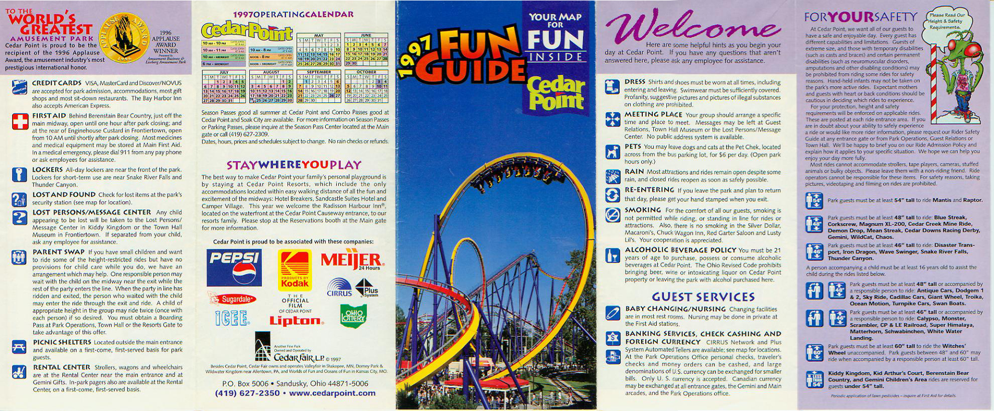 The Following Links will take you to a scaned copy of my 1997 Cedar Point Brochure & Park Guide. Enjoy :)
