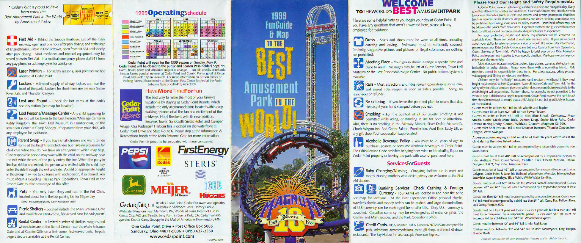 The Following Links will take you to a scaned copy of my 1999 Cedar Point Brochure & Park Guide. Enjoy :)