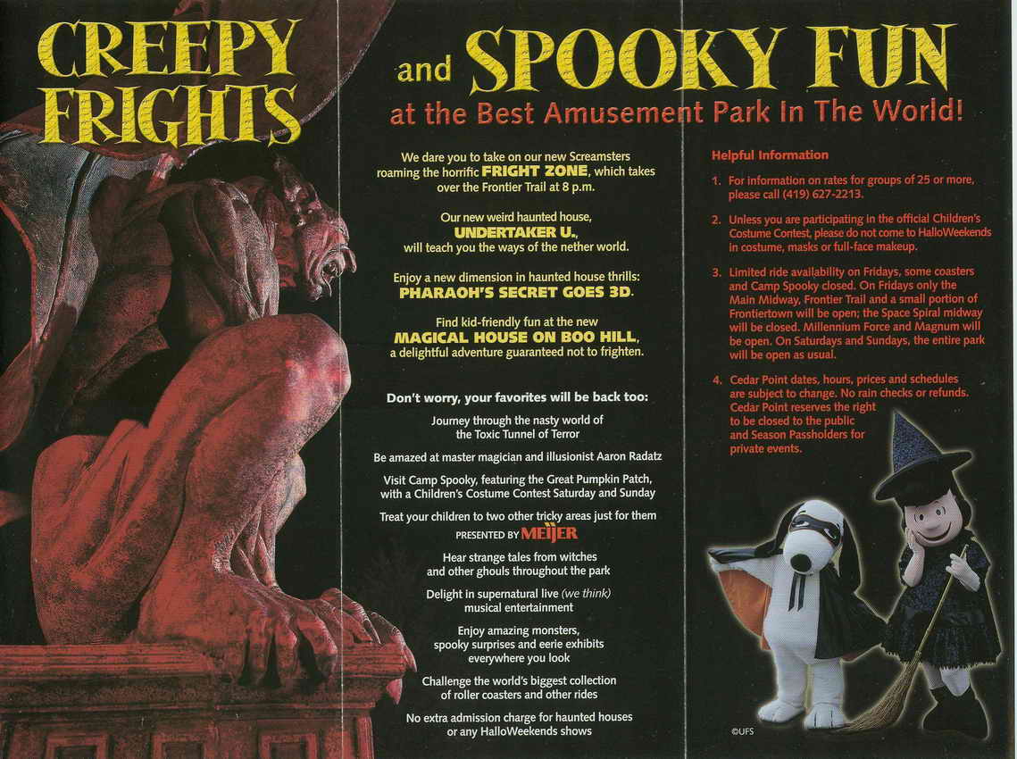 The Following Links will take you to a scaned copy of my 2001 Cedar Point Halloweekend Brochure.