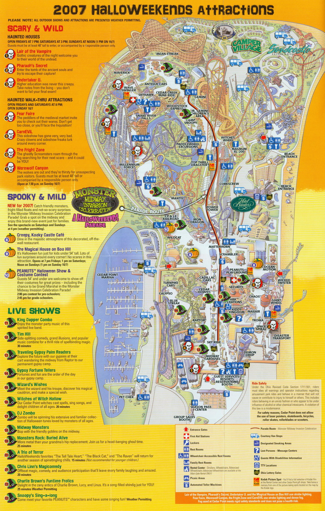 The Following Links will take you to a scaned copy of my 2007 HalloWeekends Cedar Point Brochure & Park Guide. Enjoy :)